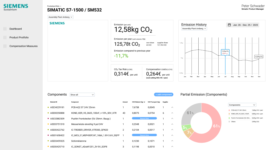 Siemens PM wants to identify the components that cause the highest emissions throughout the production of a Simatic S-7 1500 SM532.