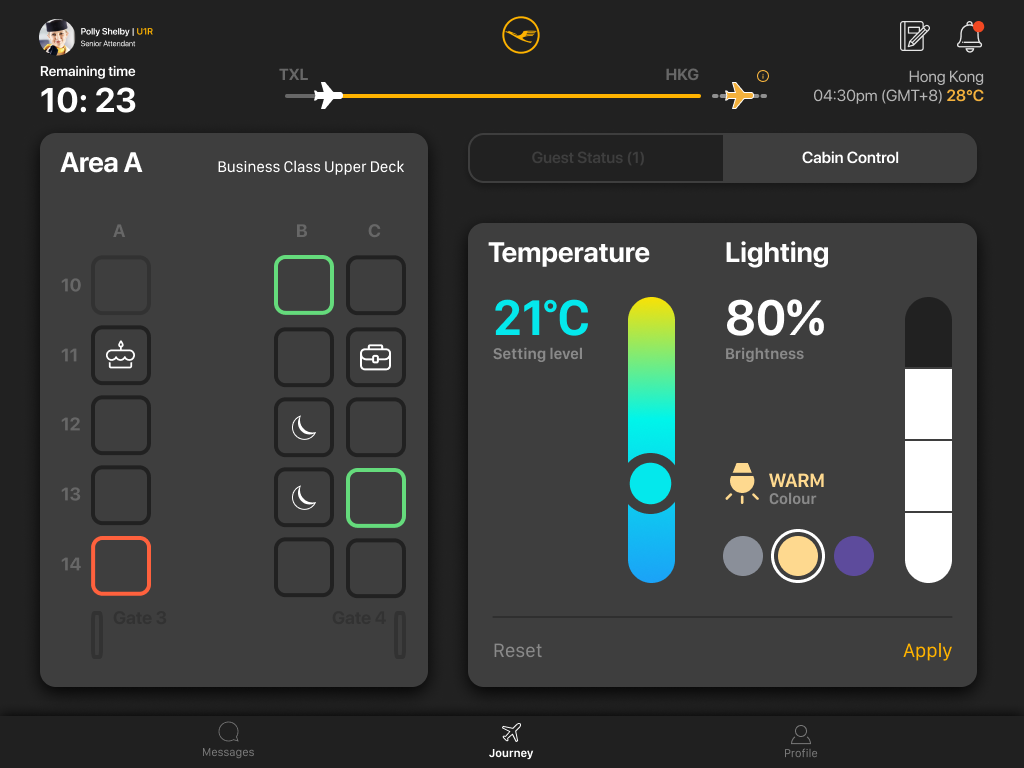 "It's a little bit unfamiliar, but it's more or less self explaining. I very much like the handover possibility. I very much like the idea adjusting the cabin via my iPad. I like the PAX information area, I know exactly about their information. There is a big improvement from today's perspective. I like the prototype. It needs some improvements."